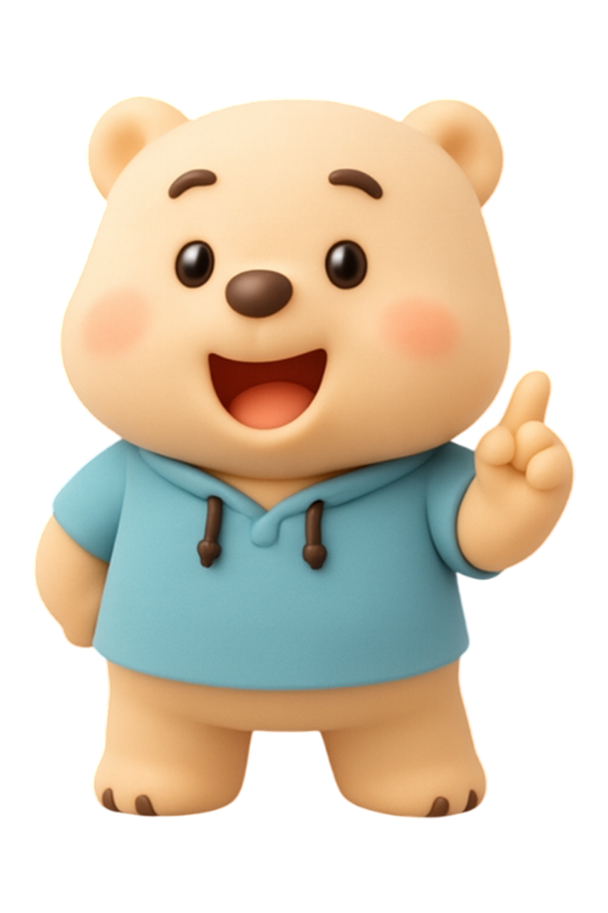 P.S. 아래 이미지는 BDAI의 성장을 함께 응원하는 공식 캐릭터 ‘데이베어’입니다. 귀여운 데이베어를 활용한 다양한 굿즈들도 곧 선보일 예정이니, 서비스와 함께 많은 기대 부탁드립니다! 🐻