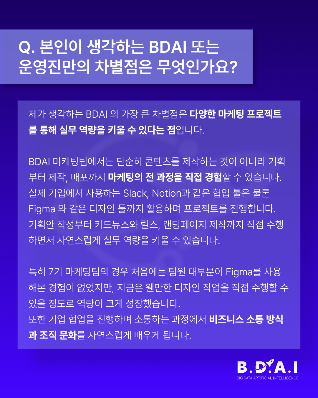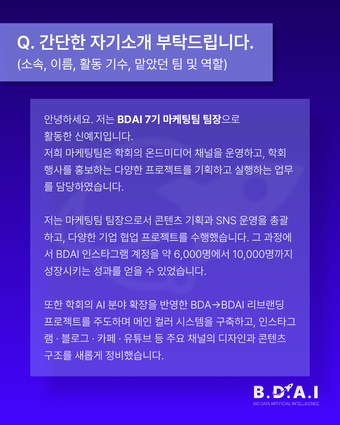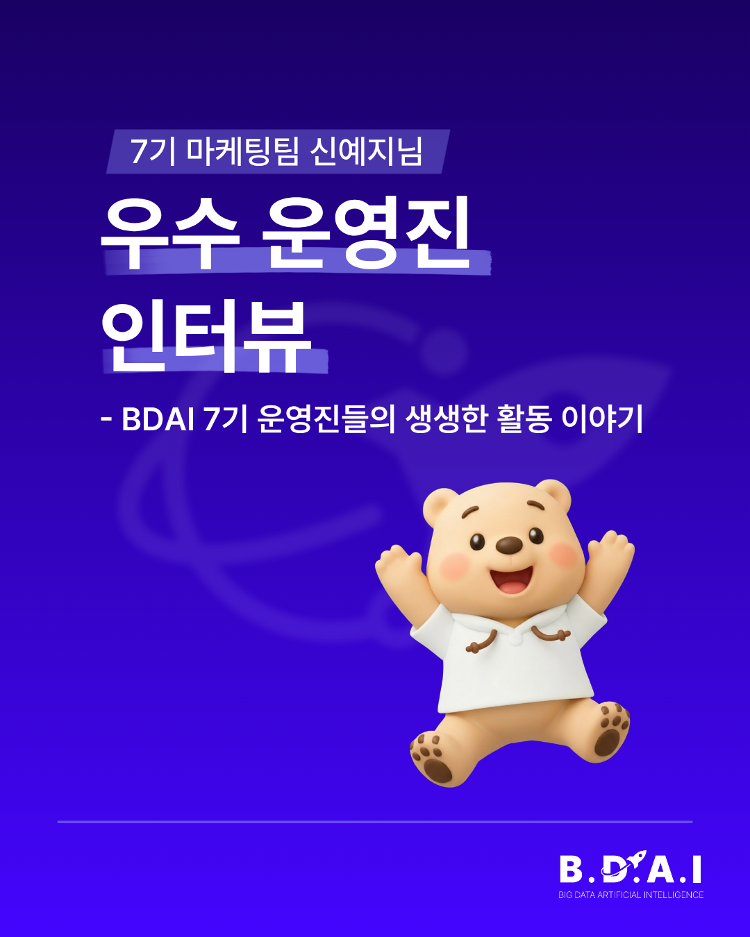 BDAI 7기 우수 운영진, 마케팅팀 신예지 팀장 인터뷰를 공유합니다.