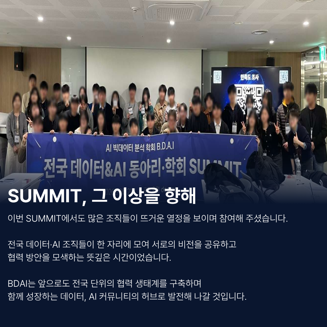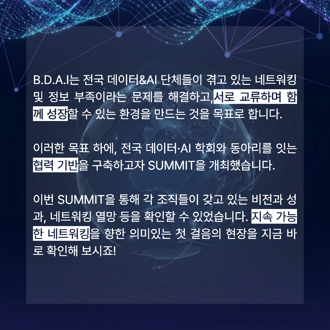 BDAI는 앞으로도 '대한민국 1위 AI 빅데이터 학회'답게, 가장 객관적이고 데이터 기반 방법으로 여러분과 함께 성장하겠습니다.