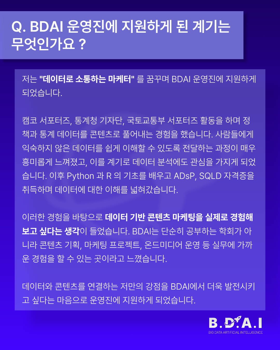 📬BDAI 우수 운영진 인터뷰 시리즈, 첫 번째 이야기를 전합니다.
