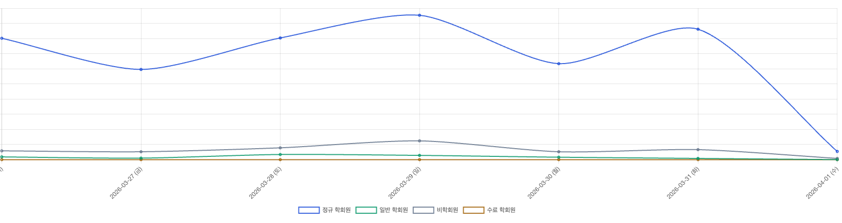 BDAI LMS가 오픈된 이후, 현재 1,600명이 넘는 학회원 및 비학회원분들이 가입해 주셨습니다. 아직 보여드리고 싶은 기능이 산더미 같음에도 불구하고, 매일 꾸준히 접속해 주시는 여러분의 관심 덕분에 운영진은 매 순간 큰 보람과 책임감을 느낍니다.