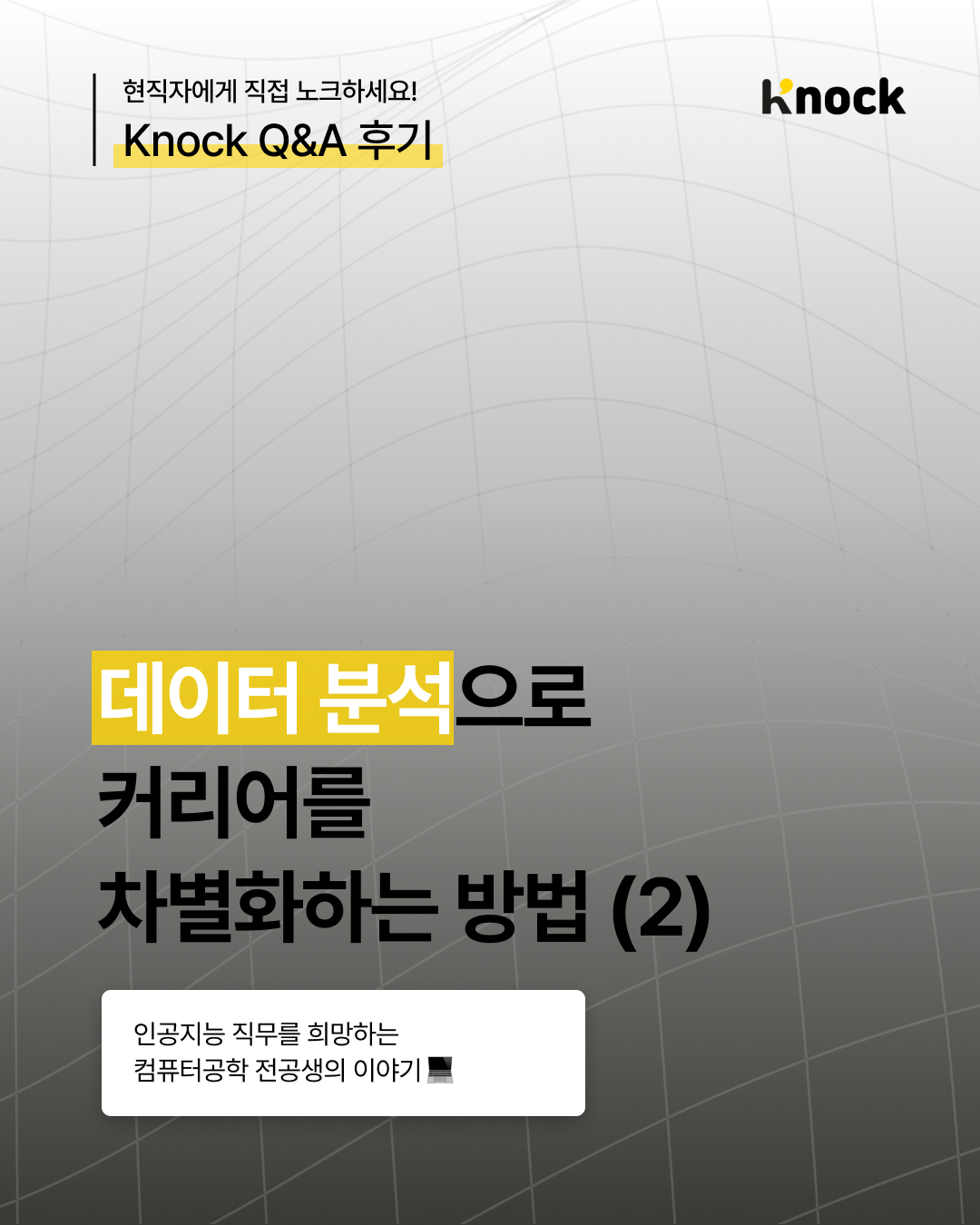 안녕하세요 🙂 취준생과 현직자를 연결하는 플랫폼 ‘Knock’에서 인공지능 직무 관련 Q&A 내용을 소개드립니다. 인공지능 직무를 희망하는 컴퓨터공학과 학생의 질문과 현직 멘토의 현실적인 답변이 담…