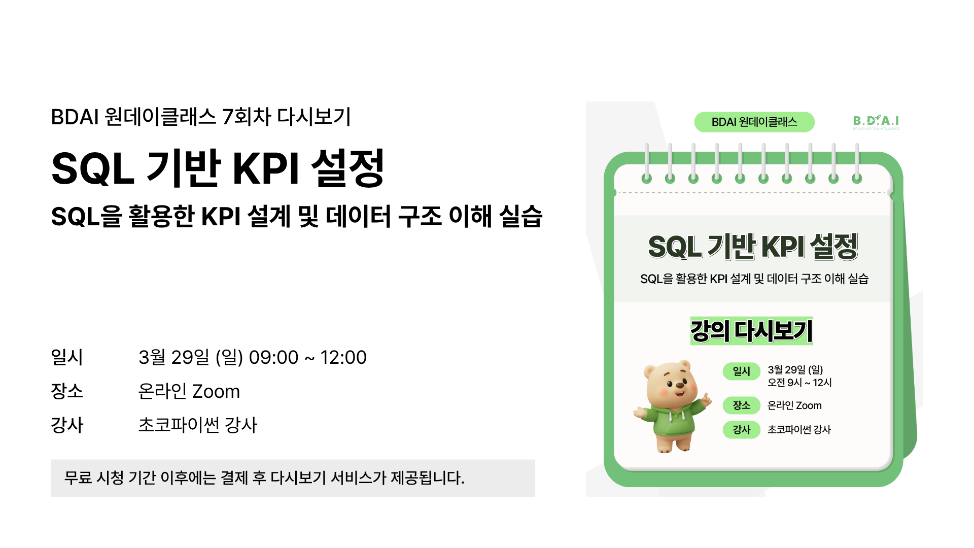 SQL을 활용한 KPI 설계 및 데이터 구조 이해 실습을 진행합니다.