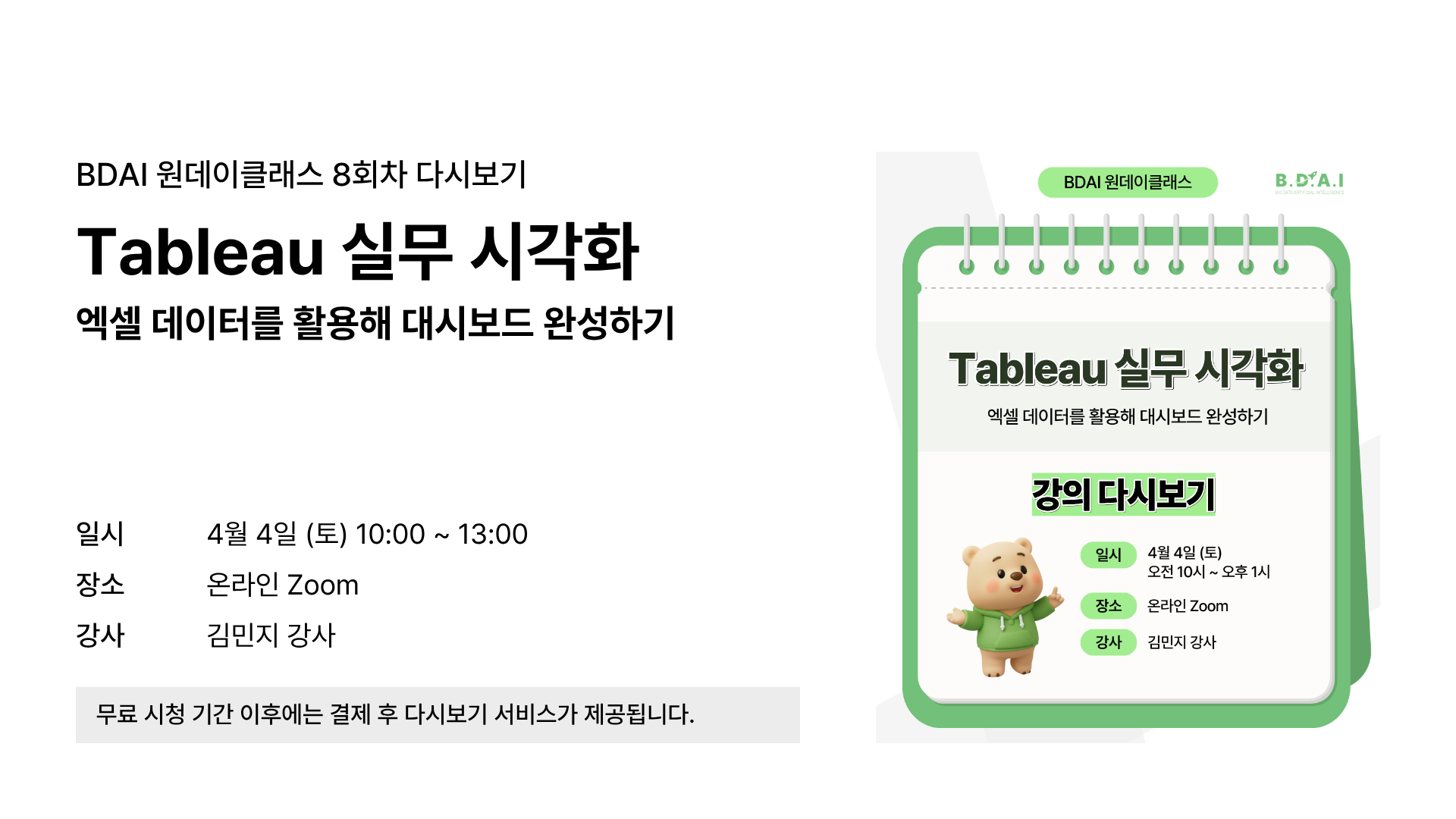 엑셀 데이터를 활용해 대시보드를 완성하는 실습을 진행합니다.